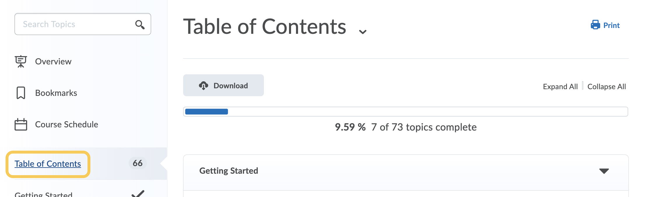 Print the List of Topics in a Module